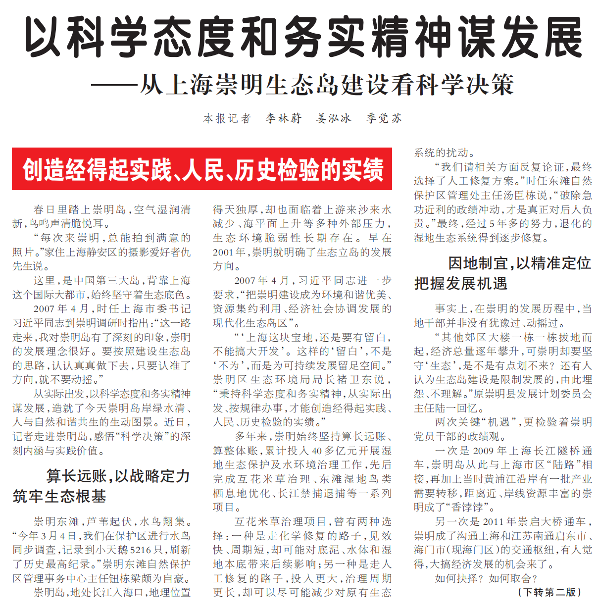 以科学态度和务实精神谋发展——从上海崇明生态岛建设看科学决策